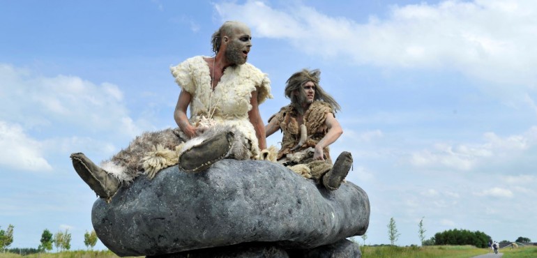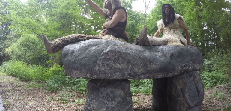 Two cavemen from the Stone Age have made a journey through time. They sit atop a magical Dolmen from back in the prehistoric age. Together they travel anywhere. Miraculously, these early humans arrived in the modern world. As you can imagine, hilarity ensues!